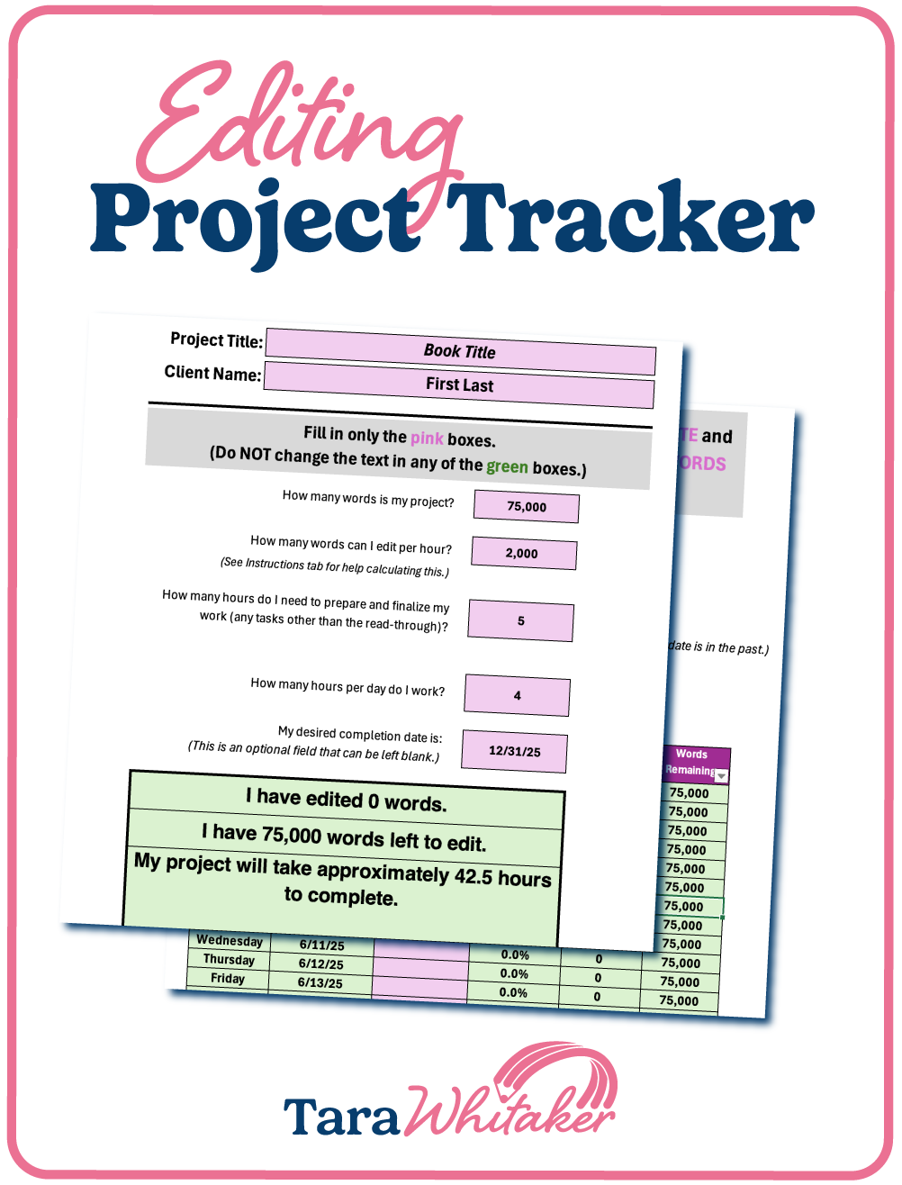 With this reusable project tracker, you’ll never miss a deadline again. Simply input some details about your working habits and the project you’re completing, and the spreadsheet will help you finish your project on time without the stress of wondering where you stand.