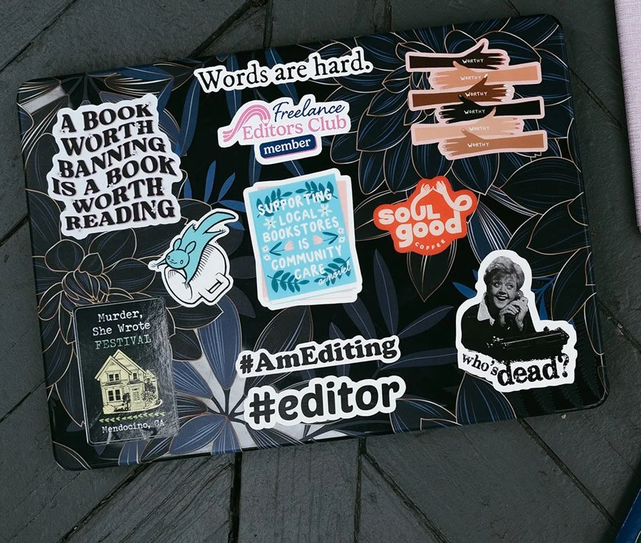 Add some flair to your laptop, water bottle, or planner with this fun four-pack of stickers created for freelance editors like you. Each pack includes stickers that read “#AmEditing,” “It’s a good day to edit,” “In my editing cave,” and “Words are hard.”